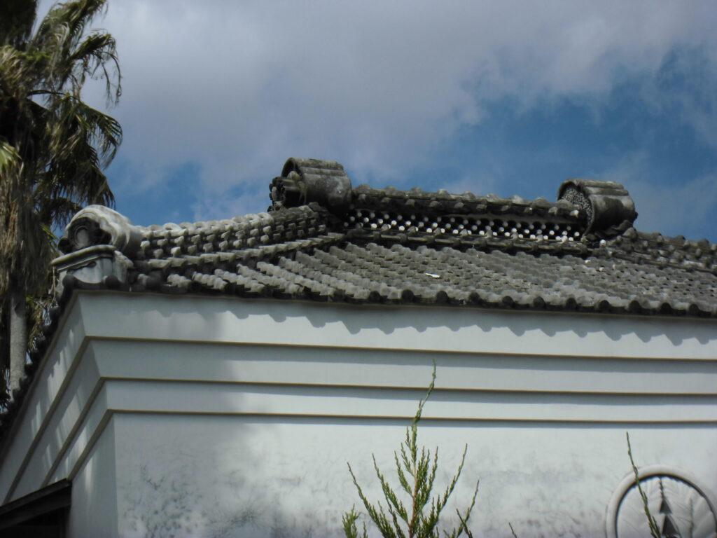 鈴木家のこの無地瓦は、たいへん幸運な瓦です。構造が木材ではないので、腐ったり虫に食われることがありません。さらに、海に近い建物なので、強風や塩害があるので、一枚一枚を漆喰で固定しています。すべての瓦を漆喰で固定しているそうです。石という構造材と、漆喰のおかげで、この無地瓦は元の状態のまま生き残っているのです。奇跡と言っていいでしょう。