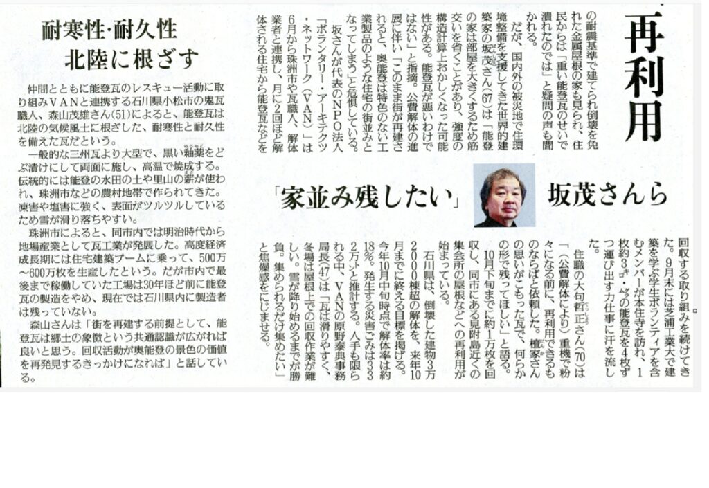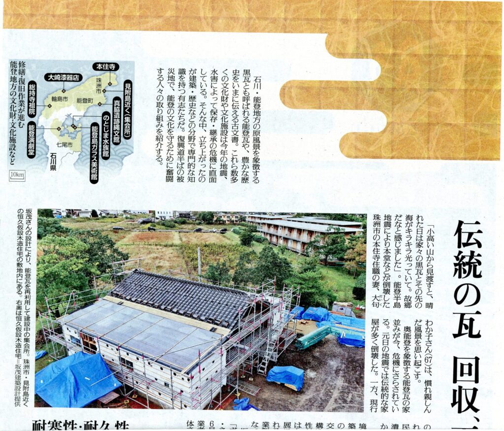 「能登の黒光りする家並は残るのか」 瓦が大事だという話をしましたので、能登地震と能登瓦の話の新聞記事を入れておきます。大きな紙面だったので、上下2枚に分けて掲載します。2024年11月3日読売新聞です。字が小さいときは拡大してご覧ください。