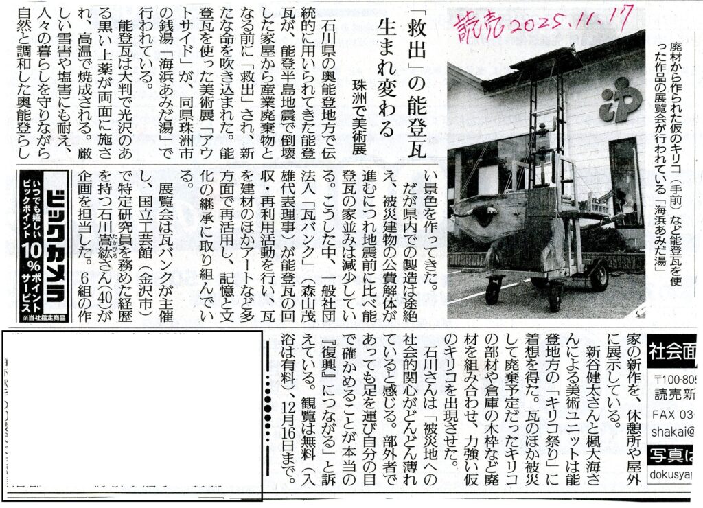能登瓦の追加で新聞記事を入れておきます