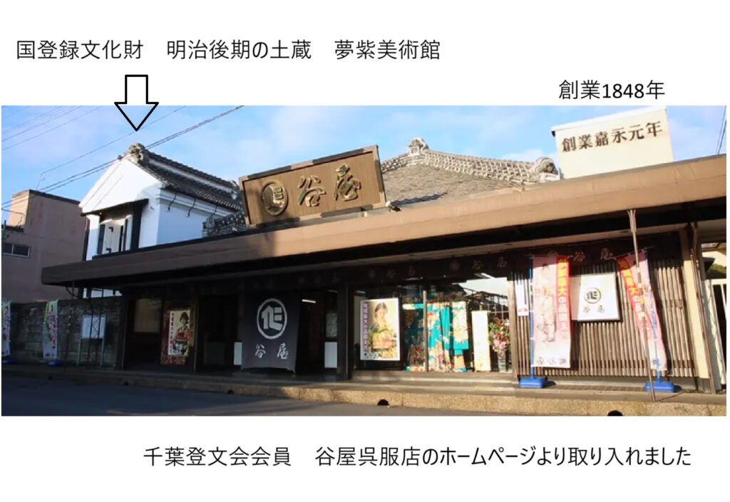 ④ 黒部川に近い旧小見川町の谷屋呉服店の登録文化財の土蔵は夢紫美術館になった 〒289-0313 千葉県香取市小見川580