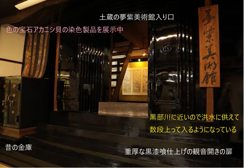 夢紫美術館は、色の宝石と言われる貝紫染色の染織工芸品を収蔵した、国内で唯一の私設染色美術館。