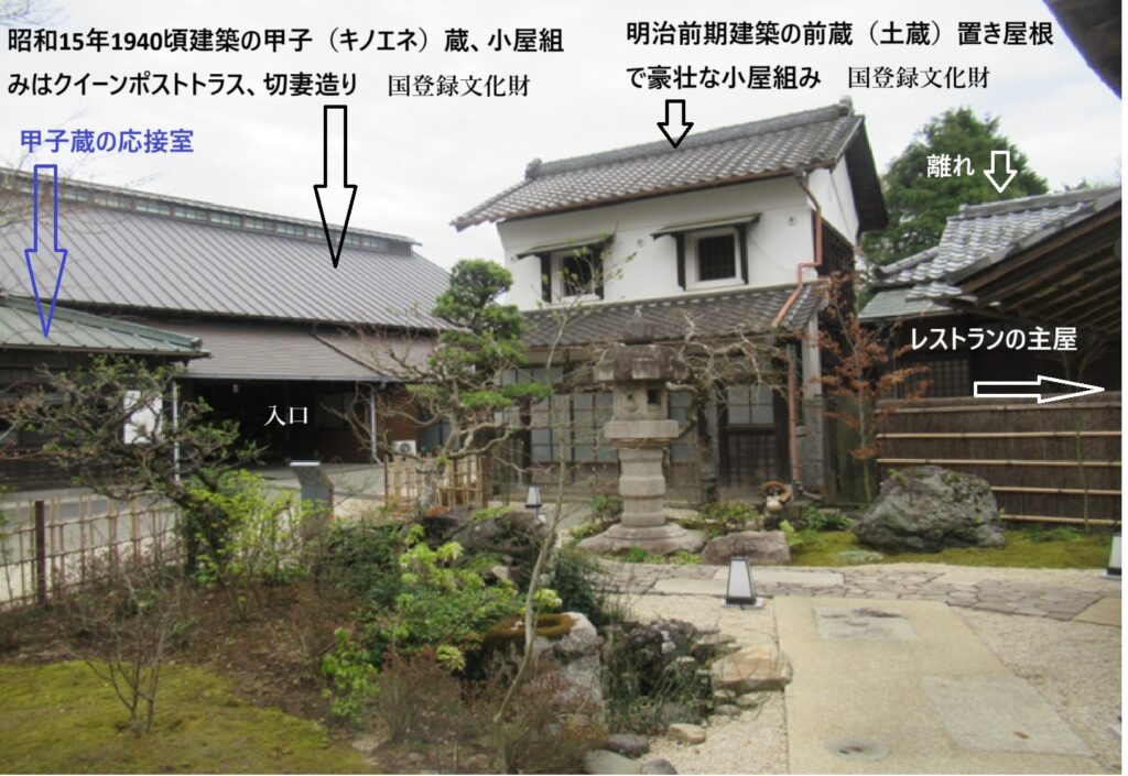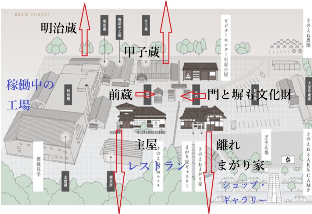 2025.10.23 お知らせ 千葉登文会会員の登録文化財を実際に活用している例のご紹介 ⑤ ⑤ お酒に良い水が出るという名の酒々井(しすい)で江戸時代から続く酒造会社は文化財の内部をレストランやショップ、ギャラリーに改装している(飯沼本家) 飯沼本家の下の絵図の建物を赤い矢印で示しているが、あまりにも広い敷地なので、よくわからない。写真の中に説明を記入してあるので、拡大して1枚1枚ご覧ください。千葉県印旛郡酒々井町馬橋字場々106-1 飯沼本家のホームページはこちら https://www.iinumahonke.co.jp/