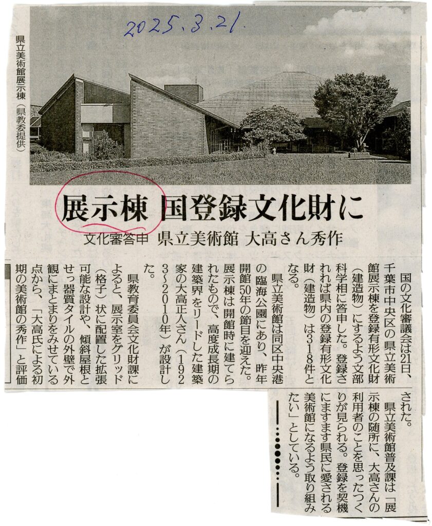 - 大髙正人 大正12(1923)年 福島県三春町生まれ 昭和19年 東京帝国大学第二工学部(西千葉)に入学 作品は、千葉県文化会館および聖賢堂(昭和42年)、千葉県立中央図書館(昭和43年)など 2010年没