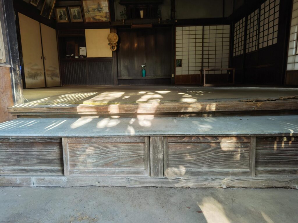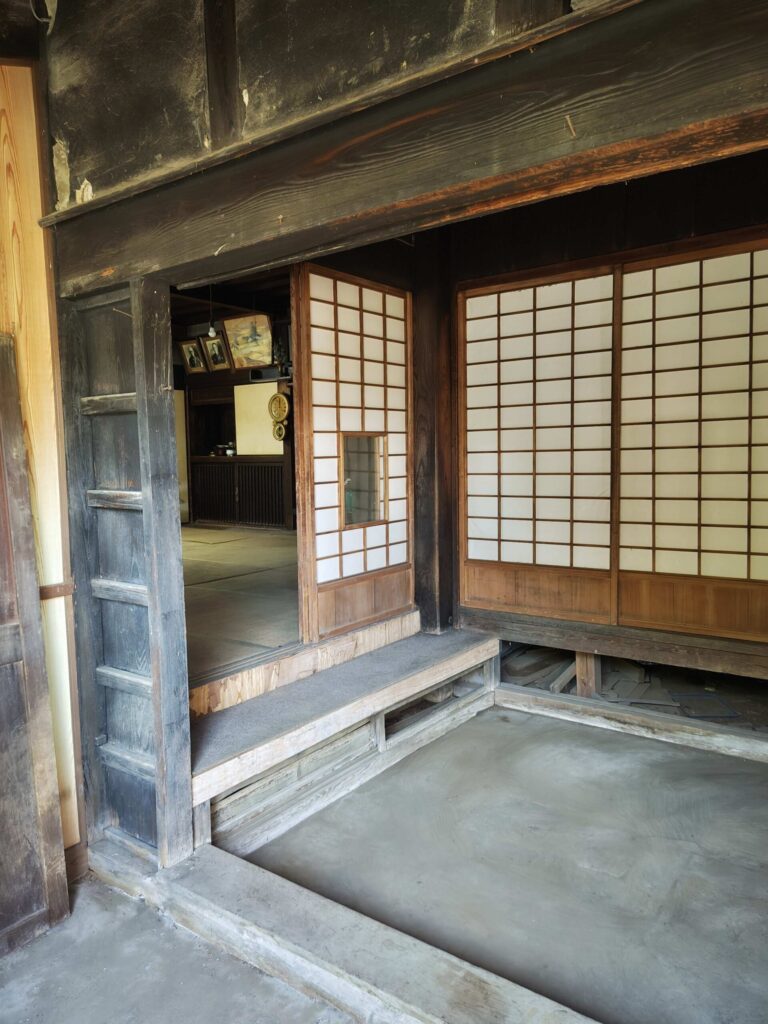 - 江戸時代の式台玄関は、武家屋敷や上層農家の格式を表す重要な要素 武士や公式な客の専用の入口 士農工商という身分制があったから生まれた玄関 江戸時代は駕籠から地面に降りることなく式台玄関から室内に入れるようになっていた 式台玄関を上がると畳敷き(4~6畳)になっていた 家族は式台玄関を使わず、入口あるいは上がり口から出入りした 式台が二つあるということは相当な豪農の家 江戸時代一般民家には玄関はなかった