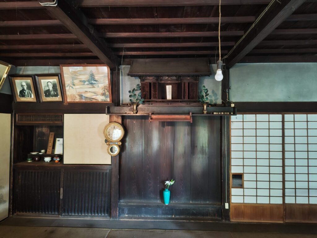 - 平屋建寄棟造平入 軒は出桁造・押板と仏壇を備えたチャノマ・式台は2か所 富津市の加藤家、芝山の伊藤家と比べてみると面白い。三つとも屋根の高さが違う この建物には式台はあるが、玄関に小屋根はない。式台玄関の写真は旧澁谷家にもあります